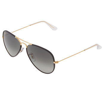 Ray Ban Sunglasses. Series Aviator Full Color Legend. Series number: RB3025JM. Color code: 919671. Shape: Aviator. Lens Width: 58 mm. Lens Bridge: 14 mm. Arm Length: 135 mm. 100% UV protection. Frame Material: Metal. Frame Color: Polished Black On Gold. Lenses Type: Gray Gradient. Rim Style: Full-Rim. UPC/EAN code: 8056597446624. Ray Ban Aviator Full Color Legend Gray Gradient Aviator Unisex Sunglasses RB3025JM 919671 58.