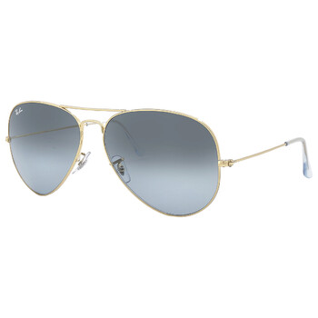 Ray Ban Sunglasses. Series Aviator Gradient. Series number: RB3025. Color code: 001/3M. Shape: Aviator. Lens Width: 62 mm. Lens Height: 54.2 mm. Lens Bridge: 14 mm. Arm Length: 140 mm. 100% UV protection. Non-Polarized. Frame Material: Metal. Frame Color: Polished Gold. Lenses Type: Blue Gradient. Rim Style: Full-Rim. UPC/EAN code: 8056597855747. Ray Ban Aviator Gradient Blue Unisex Sunglasses RB3025 001/3M 62.