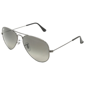 Ray Ban Sunglasses. Series Aviator Gradient. Series number: RB3025. Color code: 004/71. Shape: Aviator. Lens Width: 55 mm. Lens Bridge: 14 mm. Arm Length: 135 mm. 100% UV protection. Frame Material: Metal. Frame Color: Polished Gunmetal. Lenses Type: Grey Gradient. Rim Style: Full-Rim. UPC/EAN code: 8056597855808. Ray Ban Aviator Gradient Grey Unisex Sunglasses RB3025 004/71 55.