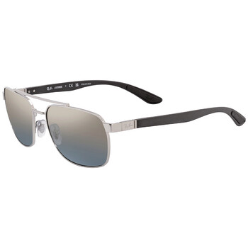 Ray Ban Sunglasses. Series number: RB3701. Color code: 003/J0. Shape: Rectangular. Lens Width: 59 mm. Lens Bridge: 17 mm. Arm Length: 145 mm. 100% UV protection. Polarized. Frame Material: Metal;Plastic. Frame Color: Silver. Lenses Type: Blue Mirrored Gold Gradient Polarized. Rim Style: Full-Rim. UPC/EAN code: 8056597728386. Ray Ban Blue Mirrored Gold Gradient Polarized Rectangular Men's Sunglasses RB3701 003/J0 59.