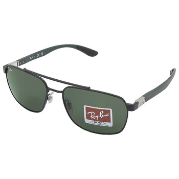 Ray Ban Sunglasses. Series number: RB3701. Color code: 002/71. Shape: Rectangular. Lens Width: 59 mm. Lens Bridge: 17 mm. Arm Length: 145 mm. 100% UV protection. Non-Polarized. Frame Material: Metal;Plastic. Frame Color: Black. Lenses Type: Dark Green. Rim Style: Full-Rim. UPC/EAN code: 8056597728379. Ray Ban Dark Green Rectangular Men's Sunglasses RB3701 002/71 59.