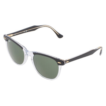 Ray Ban Sunglasses. Series Eagle Eye. Series number: RB2398. Color code: 129431. Shape: Pillow. Lens Width: 56 mm. Lens Bridge: 21 mm. Arm Length: 145 mm. 100% UV protection. Non-Polarized. Frame Material: Acetate. Frame Color: Polished Black On Transparent. Lenses Type: Green. Rim Style: Full-Rim. UPC/EAN code: 8056597824903. Ray Ban Eagle Eye Green Pillow Unisex Sunglasses RB2398 129431 56.