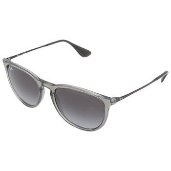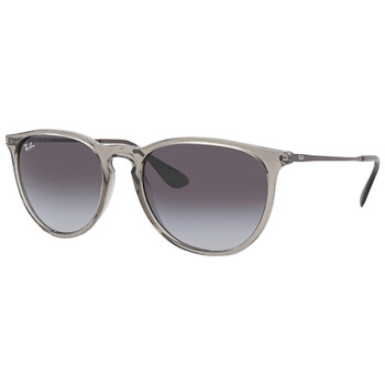 Ray Ban Sunglasses. Series Erika. Series number: RB4171. Color code: 65138G. Shape: Round. Lens Width: 54 mm. Lens Bridge: 18 mm. Arm Length: 145 mm. 100% UV protection. Frame Material: Plastic. Frame Color: Transparent Grey. Lenses Type: Light Grey Gradient Dark Grey. Rim Style: Full-Rim. UPC/EAN code: 8056597369374. Ray Ban Erika Light Grey Gradient Dark Grey Round Ladies Sunglasses RB4171 65138G 54.