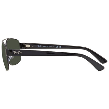 Ray Ban Sunglasses. Series number: RB3687. Color code: 002/31. Shape: Rectangular. Lens Width: 58 mm. Lens Height: 43 mm. Lens Bridge: 17 mm. Arm Length: 140 mm. 100% UV protection. Non-Polarized. Frame Material: Metal. Frame Color: Black. Lenses Type: Green. Rim Style: Full-Rim. UPC/EAN code: 8056597625951. Ray Ban Green Rectangular Men's Sunglasses RB3687 002/31 58.