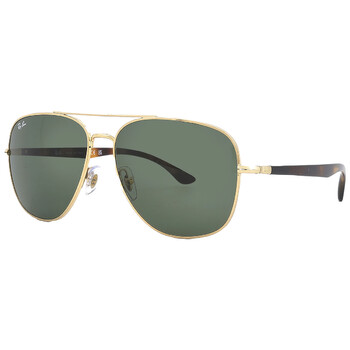 Ray Ban Sunglasses. Series number: RB3683. Color code: 001/31. Shape: Square. Lens Width: 59 mm. Lens Bridge: 15 mm. Arm Length: 145 mm. 100% UV protection. Non-Polarized. Frame Material: Metal. Frame Color: Polished Gold. Lenses Type: Green. Rim Style: Full-Rim. UPC/EAN code: 8056597846523. Ray Ban Green Square Unisex Sunglasses RB3683 001/31 59.