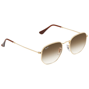 Ray Ban Sunglasses. Series Hexagonal. Series number: RB3548. Color code: 001/51. Shape: Geometric. Lens Width: 51 mm. Lens Height: 44 mm. Lens Bridge: 21 mm. Arm Length: 145 mm. 100% UV protection. Frame Material: Metal. Frame Color: Gold. Lenses Type: Light Brown Gradient. Rim Style: Full-Rim. UPC/EAN code: 8056597463836. Ray Ban Hexagonal Light Brown Gradient Unisex Sunglasses RB3548 001/51 51.