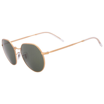 Ray Ban Sunglasses. Series Jack. Series number: RB3565. Color code: 919631. Shape: Geometric. Lens Width: 55 mm. Lens Bridge: 20 mm. Arm Length: 145 mm. 100% UV protection. Non-Polarized. Frame Material: Metal. Frame Color: Polished Gold. Lenses Type: Green. Rim Style: Full-Rim. UPC/EAN code: 8056597846899. Ray Ban Jack Green Geometric Unisex Sunglasses RB3565 919631 55.
