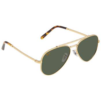 Ray Ban Sunglasses. Series New Aviator. Series number: RB3625. Color code: 919631. Shape: Aviator. Lens Width: 55 mm. Lens Height: 47 mm. Lens Bridge: 14 mm. Arm Length: 135 mm. 100% UV protection. Non-Polarized. Frame Material: Metal. Frame Color: Legend Gold. Lenses Type: Green. Rim Style: Full-Rim. UPC/EAN code: 8056597641654. Ray Ban New Aviator Green Unisex Sunglasses RB3625 919631 55.