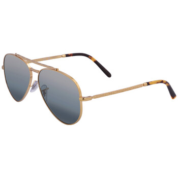 Ray Ban Sunglasses. Series New Aviator. Series number: RB3625. Color code: 9196G6. Shape: Aviator. Lens Width: 58 mm. Lens Bridge: 14 mm. Arm Length: 135 mm. 100% UV protection. Polarized. Frame Material: Metal. Frame Color: Legend Gold. Lenses Type: Polarized Clear Gradient Dark Blue. Rim Style: Full-Rim. UPC/EAN code: 8056597665117. Ray Ban New Aviator Polarized Clear Gradient Dark Blue Unisex Sunglasses RB3625 9196G6 58.
