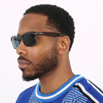 Ray Ban Sunglasses. Series New Wayfarer Classic. Series number: RB2132. Color code: 64503R. Shape: Square. Lens Width: 58 mm. Lens Height: 43 mm. Lens Bridge: 18 mm. Arm Length: 145 mm. 100% UV protection. Polarized. Frame Material: Nylon. Frame Color: Transparent Grey. Lenses Type: Polarized Blue. Rim Style: Full-Rim. UPC/EAN code: 8056597662031. Ray Ban New Wayfarer Classic Polarized Blue Unisex Sunglasses RB2132 64503R 58.