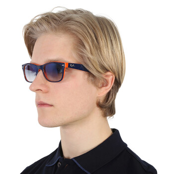 Ray Ban Sunglasses. Series New Wayfarer Color Mix. Series number: RB2132. Color code: 789/3F. Size: 52. Shape: Square. Lens Width: 52 mm. Lens Height: 38 mm. Lens Bridge: 18 mm. Arm Length: 145 mm. 100% UV protection. Non-Polarized. Frame Material: Nylon. Frame Color: Blue/Orange. Lenses Type: Light Blue Gradient. Rim Style: Full-Rim. UPC/EAN code: 805289374633. Ray Ban New Wayfarer Color Mix Light Blue Gradient Unisex Sunglasses RB2132 789/3F 52.