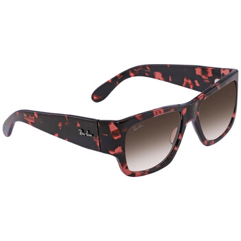Ray Ban Sunglasses. Series Nomad Fleck. Series number: RB2187. Color code: 133451. Shape: Square. Lens Width: 54 mm. Lens Height: 42 mm. Lens Bridge: 17 mm. Arm Length: 140 mm. 100% UV protection. Frame Material: Acetate. Frame Color: Pink Havana. Lenses Type: Light Brown Gradient. Rim Style: Full-Rim. UPC/EAN code: 8056597559843. Ray Ban Nomad Fleck Light Brown Gradient Square Unisex Sunglasses RB2187 133451 54.