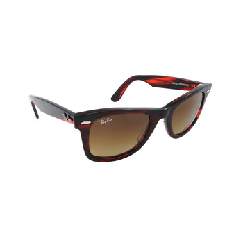 Ray Ban Sunglasses. Series Original Wayfarer Bio Acetate. Series number: RB2140. Color code: 136285. Shape: Square. Lens Width: 50 mm. Lens Height: 41 mm. Lens Bridge: 22 mm. Arm Length: 150 mm. 100% UV protection. Non-Polarized. Frame Material: Acetate. Frame Color: Striped Red. Lenses Type: Brown Gradient. Rim Style: Full-Rim. UPC/EAN code: 8056597695213. Ray Ban Original Wayfarer Bio Acetate Brown Gradient Square Unisex Sunglasses RB2140 136285 50.