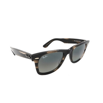 Ray Ban Sunglasses. Series Original Wayfarer Bio Acetate. Series number: RB2140. Color code: 136071. Shape: Square. Lens Width: 50 mm. Lens Height: 41 mm. Lens Bridge: 22 mm. Arm Length: 150 mm. 100% UV protection. Non-Polarized. Frame Material: Acetate. Frame Color: Striped Grey. Lenses Type: Grey Gradient. Rim Style: Full-Rim. UPC/EAN code: 8056597693202. Ray Ban Original Wayfarer Bio Acetate Grey Gradient Unisex Sunglasses RB2140 136071 50.