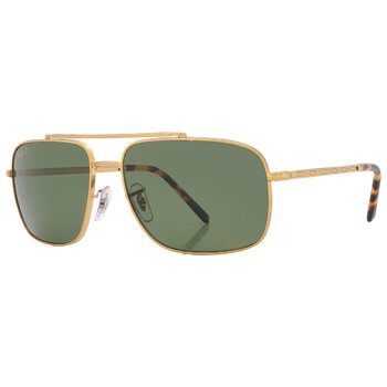 Ray Ban Sunglasses. Color code: 9196P1. Shape: Navigator. Lens Width: 59 mm. Lens Height: 44.5 mm. Lens Bridge: 15 mm. Arm Length: 135 mm. 100% UV protection. Polarized. Frame Material: Metal. Frame Color: Polished Gold. Lenses Type: Polarized Dark Green. Rim Style: Full-Rim. UPC/EAN code: 8056597837019. Ray Ban Polarized Dark Green Navigator Unisex Sunglasses RB3796 9196P1 59.