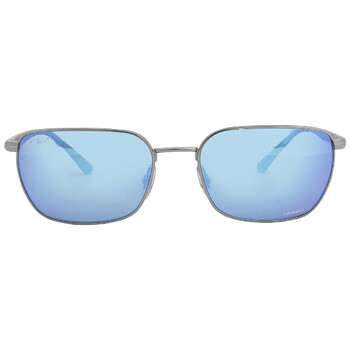 Ray Ban Sunglasses. Series number: RB3684CH. Color code: 004/4L. Shape: Rectangular. Lens Width: 58 mm. Lens Bridge: 18 mm. Arm Length: 140 mm. 100% UV protection. Polarized. Frame Material: Plastic;Metal. Frame Color: Gunmetal. Lenses Type: Polarized Gray Mirrored Blue. Rim Style: Full-Rim. UPC/EAN code: 8056597533072. Ray Ban Polarized Gray Mirrored Blue Rectangular Unisex Sunglasses RB3684CH 004/4L 58.