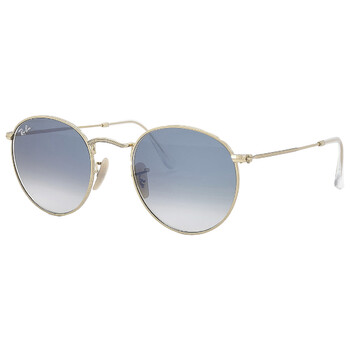 Ray Ban Sunglasses. Series Round Flat Lenses. Series number: RB3447N. Color code: 001/3F. Shape: Round. Lens Width: 50 mm. Lens Height: 47 mm. Lens Bridge: 21 mm. Arm Length: 145 mm. 100% UV protection. Non-Polarized. Frame Material: Metal. Frame Color: Gold. Lenses Type: Light Blue Gradient. Rim Style: Full-Rim. UPC/EAN code: 8053672878233. Ray Ban Round Flat Lenses Light Blue Gradient Unisex Sunglasses RB3447N 001/3F 50.