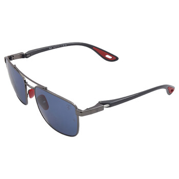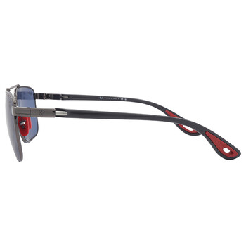 Ray Ban Sunglasses. Series Scuderia Ferrari. Color code: F08580. Shape: Navigator. Lens Width: 58 mm. Lens Height: 44.2 mm. Lens Bridge: 18 mm. Arm Length: 145 mm. 100% UV protection. Non-Polarized. Frame Material: Steel. Frame Color: Polished Gunmetal. Lenses Type: Dark Blue. Rim Style: Full-Rim. UPC/EAN code: 8056597852739. Ray Ban Scuderia Ferrari Dark Blue Navigator Men's Sunglasses RB3715M F08580 58.