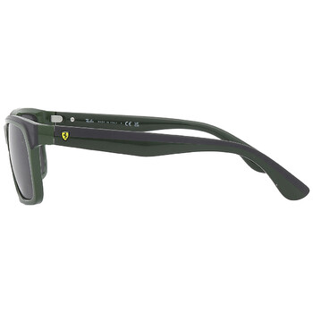 Ray Ban Sunglasses. Series Scuderia Ferrari. Series number: RB4393M. Color code: F68087. Shape: Rectangular. Lens Width: 56 mm. Lens Bridge: 18 mm. Arm Length: 14 mm. 100% UV protection. Non-Polarized. Frame Material: Plastic. Frame Color: Fiorano Green on Rubber Black. Lenses Type: Dark Gray. Rim Style: Full-Rim. UPC/EAN code: 8056597782173. Ray Ban Scuderia Ferrari Dark Gray Rectangular Unisex Sunglasses RB4393M F68087 56.