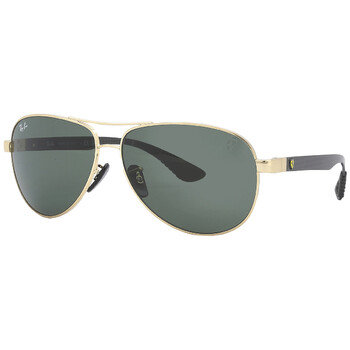 Ray Ban Sunglasses. Series Scuderia Ferrari. Series number: RB8331M. Color code: F00871. Shape: Pilot. Lens Width: 61 mm. Lens Bridge: 13 mm. Arm Length: 140 mm. 100% UV protection. Non-Polarized. Frame Material: Metal. Frame Color: Gold. Lenses Type: Dark Green. Rim Style: Full-Rim. UPC/EAN code: 8056597853606. Ray Ban Scuderia Ferrari Dark Green Pilot Men's Sunglasses RB8331M F00871 61.