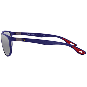 Ray Ban Sunglasses. Series Scuderia Ferrari. Series number: RB4394M. Color code: F6046G. Shape: Pillow. Lens Width: 61 mm. Lens Bridge: 14 mm. Arm Length: 145 mm. 100% UV protection. Non-Polarized. Frame Material: Plastic. Frame Color: Matte Blue. Lenses Type: Gray Mirrored Silver. Rim Style: Full-Rim. UPC/EAN code: 8056597761994. Ray Ban Scuderia Ferrari Gray Mirrored Silver Pillow Unisex Sunglasses RB4394M F6046G 61.