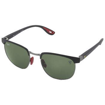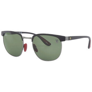 Ray Ban Sunglasses. Series Scuderia Ferrari. Series number: RB3698M. Color code: F07331. Shape: Square. Lens Width: 53 mm. Lens Bridge: 20 mm. Arm Length: 145 mm. 100% UV protection. Non-Polarized. Frame Material: Steel. Frame Color: Matte Black On Matte Gunmetal. Lenses Type: Green. Rim Style: Full-Rim. UPC/EAN code: 8056597645409. Ray Ban Scuderia Ferrari Green Square Unisex Sunglasses RB3698M F07331 53.