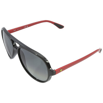 Ray Ban Sunglasses. Series Scuderia Ferrari. Series number: RB4125M. Color code: F64471. Shape: Aviator. Lens Width: 57 mm. Lens Bridge: 14 mm. Arm Length: 140 mm. 100% UV protection. Frame Material: Plastic. Frame Color: Black. Lenses Type: Grey Gradient. Rim Style: Full-Rim. UPC/EAN code: 8056597216593. Ray Ban Scuderia Ferrari Grey Gradient Aviator Unisex Sunglasses RB4125M F64471 57.