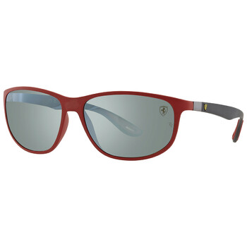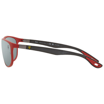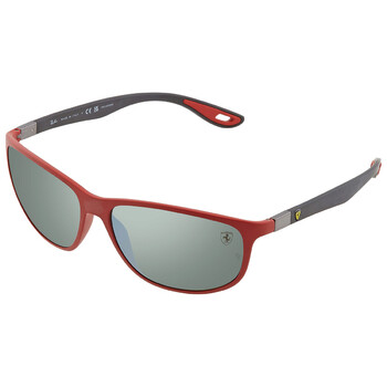 Ray Ban Sunglasses. Series Scuderia Ferrari. Series number: RB4394M. Color code: F678H1. Shape: Pillow. Lens Width: 61 mm. Lens Bridge: 14 mm. Arm Length: 145 mm. 100% UV protection. Polarized. Frame Material: Plastic. Frame Color: Matte Red. Lenses Type: Polarized Green Mirror Silver. Rim Style: Full-Rim. UPC/EAN code: 8056597762021. Ray Ban Scuderia Ferrari Polarized Green Mirror Silver Pillow Unisex Sunglasses RB4394M F678H1 61.