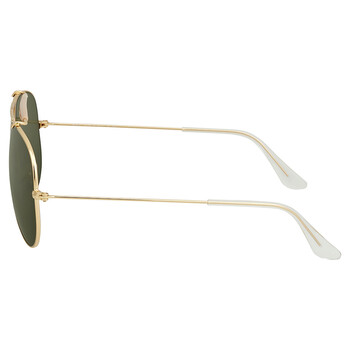 Ray Ban Sunglasses. Series Shooter. Series number: RB3138. Color code: 001. Shape: Aviator. Lens Width: 58 mm. Lens Height: 50 mm. Lens Bridge: 09 mm. Arm Length: 135 mm. 100% UV Protection. Non-Polarized. Frame Material: Metal. Frame Color: Gold. Lenses Type: Green Classic G-15. Rim Style: Full-Rim. UPC/EAN code: 805289003694. Ray Ban Shooter Green Classic G-15 Aviator Unisex Sunglasses RB3138 001 58.