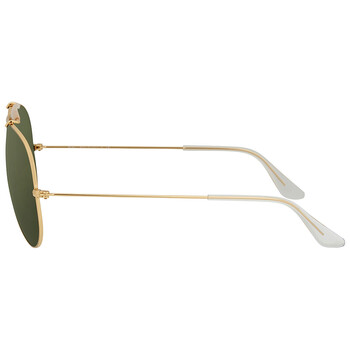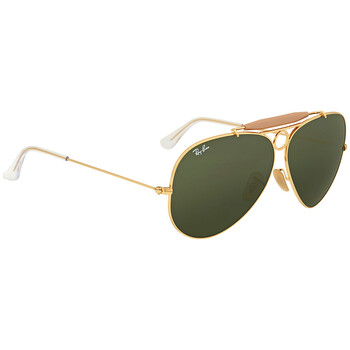 Ray Ban Sunglasses. Series Shooter. Series number: RB3138. Color code: 001. Size: 62. Shape: Aviator. Lens Width: 62 mm. Lens Bridge: 09 mm. Arm Length: 135 mm. 100% UV Protection. Non-Polarized. Frame Material: Metal. Frame Color: Gold. Lenses Type: Green Classic G-15. Rim Style: Full-Rim. UPC/EAN code: 805289006534. Ray Ban Shooter Green Classic G-15 Aviator Unisex Sunglasses RB3138 001 62.