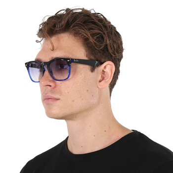 Ray Ban Sunglasses. Series Steve. Series number: RB4487. Color code: 663219. Shape: Square. Lens Width: 54 mm. Lens Bridge: 18 mm. Arm Length: 145 mm. 100% UV protection. Non-Polarized. Frame Material: Plastic. Frame Color: Black on Transparent Blue. Lenses Type: Clear Gradient. Rim Style: Full-Rim. UPC/EAN code: 8056597717847. Ray Ban Steve Clear Gradient Square Unisex Sunglasses RB4487-663219-54.
