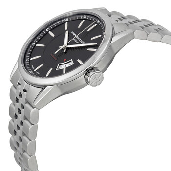 Stainless steel case with a stainless steel bracelet. Fixed stainless steel bezel. Black dial with luminous silver-tone hands and index hour markers. Minute markers around the outer rim. Dial Type: Analog. Luminescent hands and markers. Date display at the 4 o'clock position. Automatic movement with a 38 hour power reserve. Scratch resistant sapphire crystal. Pull / push crown. Skeleton case back. Case diameter: 42 mm. Case thickness: 10.2 mm. Round case shape. Band width: 22 mm. Push button fold over clasp. Water resistant at 100 meters / 330 feet. Functions: date, hour, minute, second. Casual watch style. Watch label: Swiss Made. Raymond Weil Freelancer Automatic Black Dial Stainless Steel Men's Watch 2730-ST-20021.