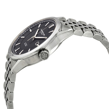 Silver-tone stainless steel case with a silver-tone stainless steel bracelet. Fixed silver-tone stainless steel bezel. Black dial with luminous silver-tone hands and index hour markers. Minute markers around the outer rim. Dial Type: Analog. Luminescent hands and markers. Date display at the 3 o'clock position. Raymond Weil Calibre RW 4200 Automatic movement, based upon Sellita SW-200, containing 25 Jewels, bitting at 28800 vph, and has a power reserve of approximately 38 hours. Scratch resistant sapphire crystal. Screw down crown. Transparent case back. Round case shape, case size: 42 mm, case thickness: 10.5 mm. Band width: 22 mm. Fold over with safety release clasp. Water resistant at 100 meters / 330 feet. Functions: date, hour, minute, second. Freelancer Series. Casual watch style. Watch label: Swiss Made. Raymond Weil Freelancer Automatic Black Dial Men's Watch 2731-ST-20001.