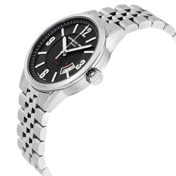Stainless steel case with a stainless steel link bracelet. Fixed stainless steel bezel. Black dial with luminous hands and stick hour markers. Arabic numerals mark the 3, 6, 9 and 12 o'clock positions.Minute markers around the outer rim. Luminescent hands and markers. Date displays at the 4 o'clock position. Self winding movement. Scratch resistant sapphire crystal. Skeleton sapphire case back. Case diameter: 42 mm. Deployment clasp. Water resistant at 100 meters/ 330 feet. Functions: hours, minutes, seconds, date. Raymond Weil Freelancer Black Dial Men's Watch 2730-ST-05207.