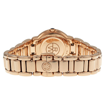 Rose gold PVD stainless steel case and bracelet. Fixed rose gold PVD bezel. Silver dial with blue hands and Roman numeral hour markers. Dial Type: Analog. Date display at the 3 o'clock position. Quartz movement. Scratch resistant sapphire crystal. Pull / push crown. Solid case back. Case size: 29 mm. Case thickness: 7.75 mm. Round case shape. Band width: 20 mm. Fold over clasp with a push button release. Water resistant at 50 meters / 165 feet. Functions: date, hour, minute. Luxury watch style. Watch label: Swiss Made. Item Variations: 5229 P5 01659, 5229.P5.01659, 5229P501659. Raymond Weil Jasmine Silver Dial Ladies Watch 5229-P5-01659.