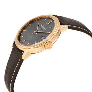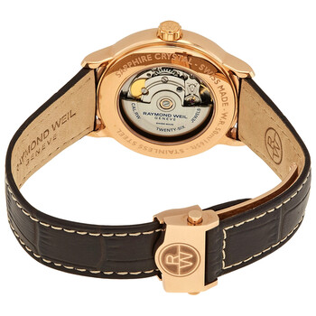 Rose gold PVD stainless steel case with a brown (calfskin) leather strap with an alligator motif. Fixed rose gold PVD bezel. Grey dial with rose gold-plated hands and index hour markers. Minute markers around the outer rim. Dial Type: Analog. Date display at the 3 o'clock position. Raymond Weil calibre RW 4200 automatic movement with a 38-hour power reserve. Scratch resistant sapphire crystal. Pull / push crown. Solid case back. Round case shape. Case size: 39.5 mm. Case thickness: 9.2 mm. Fold over clasp with a double push button release. Water resistant at 50 meters / 165 feet. Functions: date, hour, minute, second. Luxury watch style. Watch label: Swiss Made. Raymond Weil Maestro Automatic Grey Dial Men's Watch 2237-PC5-60011.