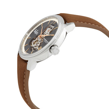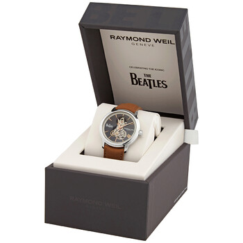 Stainless steel case with a brown (vegan leather) polyurethane strap. Fixed stainless steel bezel. Grey (open heart) dial with gold-tone hands and index hour markers. Minute markers around the outer rim. Dial Type: Analog. Automatic movement. Scratch resistant sapphire crystal. Pull / push crown. Transparent case back. Round case shape. Case size: 40 mm. Case thickness: 9.2 mm. Deployment clasp with a push button release. Water resistant at 50 meters / 165 feet. Functions: hour, minute, second. Maestro Series. Dress watch style. Watch label: Swiss Made. Raymond Weil Maestro Automatic Grey Dial Men's Watch 2215-STC-BEAT4.