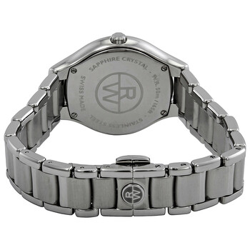 Stainless steel case with a stainless steel bracelet. Fixed stainless steel bezel set with diamonds. Black dial with silver-tone hands and diamond hour markers. Dial Type: Analog. Quartz movement. Scratch resistant mineral crystal. Pull / push crown. Solid case back. Round case shape. Case size: 32 mm. Case thickness: 7.58 mm. Fold over clasp with a safety release. Water resistant at 50 meters / 165 feet. Functions: hour, minute. Additional Info: set of 64 diamonds (0.34 ct). Dress watch style. Watch label: Swiss Made. Raymond Weil Noemia Black Dial Ladies Diamonds Watch 5132-STS-20081.