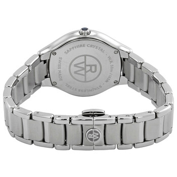 Stainless steel case with a stainless steel bracelet. Fixed stainless steel bezel. White mother of pearl dial with silver-tone hands and index hour markers. Minute markers around an inner ring. Dial Type: Analog. Quartz movement. Scratch resistant sapphire crystal. Pull / push crown. Solid case back. Round case shape. Case size: 32 mm. Case thickness: 7.58 mm. Band width: 16 mm. Fold over clasp with a push button release. Water resistant at 50 meters / 165 feet. Functions: hour, minute. Noemia Series. Casual watch style. Watch label: Swiss Made. Raymond Weil Noemia White Mother of Pearl Dial Ladies Watch 5132-ST-97001.