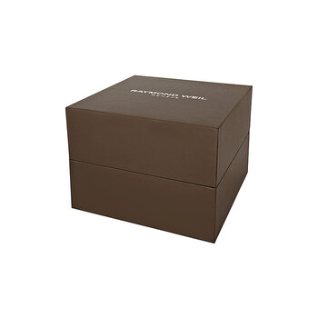 Stainless steel case with a brown (alligator) leather strap. Fixed stainless steel bezel. Brown dial with luminous brown hands and Roman numeral hour markers. Minute markers around the outer rim. Dial Type: Analog. Luminescent hands. Date display at the 3 o'clock position. Automatic movement with a 38-hour power reserve. Scratch resistant sapphire crystal. Pull / push crown. Skeleton case back. Case diameter: 39 mm. Case thickness: 9.6 mm. Round case shape. Band width: 19 mm. Band length: 8 inches. Deployment clasp with a push button release. Water resistant at 100 meters / 330 feet. Functions: date, hour, minute, second. Dress watch style. Watch label: Swiss Made. Item Variations: 2970 STC 00718, 2970.STC.00718, 2970STC00718. Raymond Weil Parsifal Automatic Brown Dial Stainless Steel Men's Watch 2970-STC-00718.