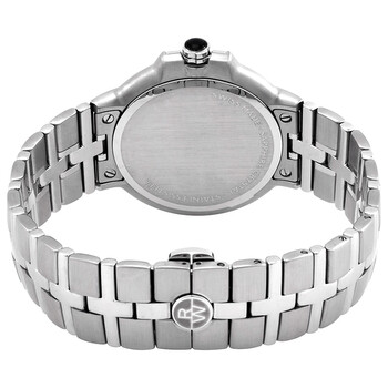 Stainless steel case with a stainless steel bracelet. Fixed stainless steel bezel. Black dial with silver-tone hands and Roman numeral hour markers. Minute markers around the outer rim. Dial Type: Analog. Date display at the 3 o'clock position. Quartz movement. Scratch resistant sapphire crystal. Pull / push crown. Solid case back. Round case shape. Case size: 41 mm. Case thickness: 6.75 mm. Band width: 22 mm. Fold over clasp with a double safety release. Water resistant at 50 meters / 165 feet. Functions: date, hour, minute, second. Dress watch style. Watch label: Swiss Made. Raymond Weil Parsifal Black Dial Men's Watch 5580-ST-00208.