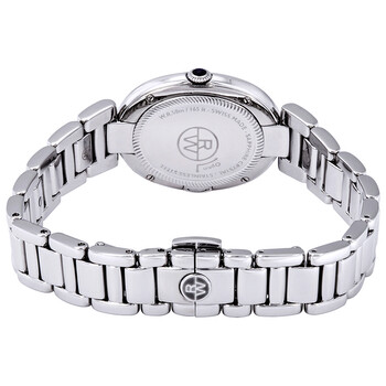 Stainless steel case with a stainless steel bracelet. Fixed stainless steel bezel. Mother of pearl dial with silver-tone hands and diamond hour markers. Roman numerals mark the 6 and 12 o'clock positions. Minute markers. Dial Type: Analog. ETA caliber F04.101 quartz movement. Scratch resistant sapphire crystal. Pull / push crown. Solid case back. Oval case shape. Case dimensions: 29 mm x 36 mm. Case thickness: 8.74 mm. Fold over clasp. Water resistant at 50 meters / 165 feet. Functions: hour, minute. Additional Info: diamonds in dial (0.03 ct). Shine Series. Dress watch style. Watch label: Swiss Made. Raymond Weil Shine Mother of Pearl Diamond Dial Ladies Watch 1700-ST-00995.