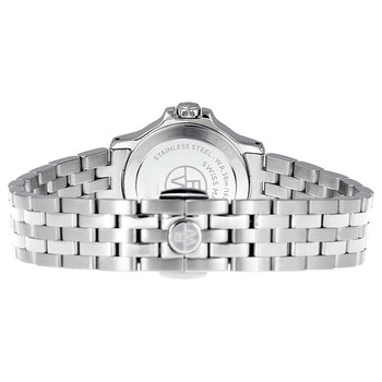 Stainless steel case with a stainless steel bracelet. Fixed stainless steel bezel. Grey dial with silver-tone hands and Roman numeral hour markers. Minute markers around the outer rim. Dial Type: Analog. Luminescent hands and markers. Date display appears at the 3 o'clock position. Quartz movement. Scratch resistant sapphire crystal. Solid case back. Case diameter: 28 mm. Case thickness: 6.75 mm. Round case shape. Deployment clasp with push button release. Water resistant at 50 meters / 165 feet. Functions: date, hour, minute, second. Luxury watch style. Watch label: Swiss Made. Raymond Weil Tango Grey Dial Stainless Steel Ladies Watch 5399-ST-00608.