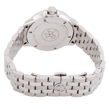 Silver-tone stainless steel case and bracelet. Fixed silver-tone stainless steel bezel. White dial with silver-tone hands and index hour markers. Minute markers around the outer rim. Dial Type: Analog. Luminescent hands and markers. Date display at the 3 o'clock position. Quartz movement. Scratch resistant sapphire crystal. Screw down crown. Solid case back. Round case shape, case size: 41 mm, case thickness: 10.05 mm. Band width: 20 mm. Fold over clasp with a safety release. Water resistant at 300 meters / 1000 feet. Functions: date, hour, minute, second. Tango Series. Casual watch style. Watch label: Swiss Made. Raymond Weil Tango Quartz White Dial Men's Watch 8160-ST-30041.