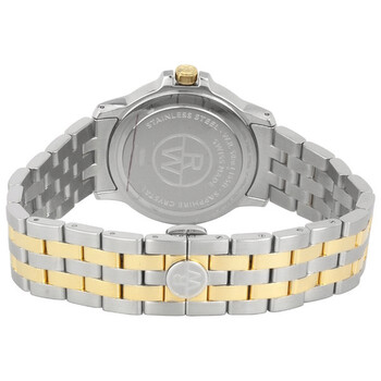 Stainless steel case with a two-tone (silver-tone and 18kt yellow gold-tone) stainless steel bracelet. Fixed 18kt yellow gold-plated bezel. White dial with luminous yellow gold- tone hands and Roman numeral hour markers. Minute markers around the outer rim. Dial Type: Analog. Luminescent hands and markers. Date display at the 3 o'clock position. Quartz movement. Scratch resistant sapphire crystal. Protected RW engraved crown. Solid case back. Round case shape. Case size: 39 mm. Case thickness: 7.6 mm. Band width: 20 mm. Deployment clasp with a push button release. Water resistant at 50 meters / 165 feet. Functions: hours, minutes, seconds, calendar. Additional Info: suitable for swimming and showering. Fashion watch style. Watch label: Swiss Made. Item Variations: 5599 STP 00308, 5599.STP.00308, 5599STP00308. Raymond Weil Tango White Dial Two-tone Men's Watch 5599-STP-00308.