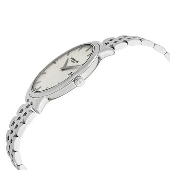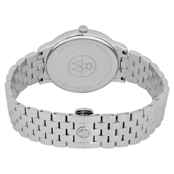 Stainless steel case with a stainless steel bracelet. Fixed stainless steel bezel. Ivory dial with silver-tone hands and index hour markers. Minute markers around the outer rim. Dial Type: Analog. Date display at the 3 o'clock position. Quartz movement. Scratch resistant sapphire crystal. Pull / push crown. Solid case back. Round case shape. Case size: 42 mm. Case thickness: 7.82 mm. Band width: 20 mm. Deployment clasp. Water resistant at 50 meters / 165 feet. Functions: date, hour, minute, second. Additional Info: in general, suitable for short periods of recreational swimming, but not diving or snorkeling. Casual watch style. Watch label: Swiss Made. Raymond Weil Toccata Ivory Dial Men's Watch 5588-ST-40001.