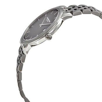 Stainless steel case with a stainless steel bracelet. Fixed stainless steel bezel. Grey dial with silver-tone hands and index hour markers. Minute markers around the outer rim. Dial Type: Analog. Date display at the 3 o'clock position. Quartz movement. Scratch resistant sapphire crystal. Pull / push crown. Solid case back. Round case shape. Case size: 42 mm. Case thickness: 6 mm. Band width: 20 mm. Fold over clasp with a double safety release. Water resistant at 50 meters / 165 feet. Functions: date, hour, minute, second. Dress watch style. Watch label: Swiss Made. Raymond Weil Toccata Quartz Grey Dial Men's Watch 5585-ST-60001.