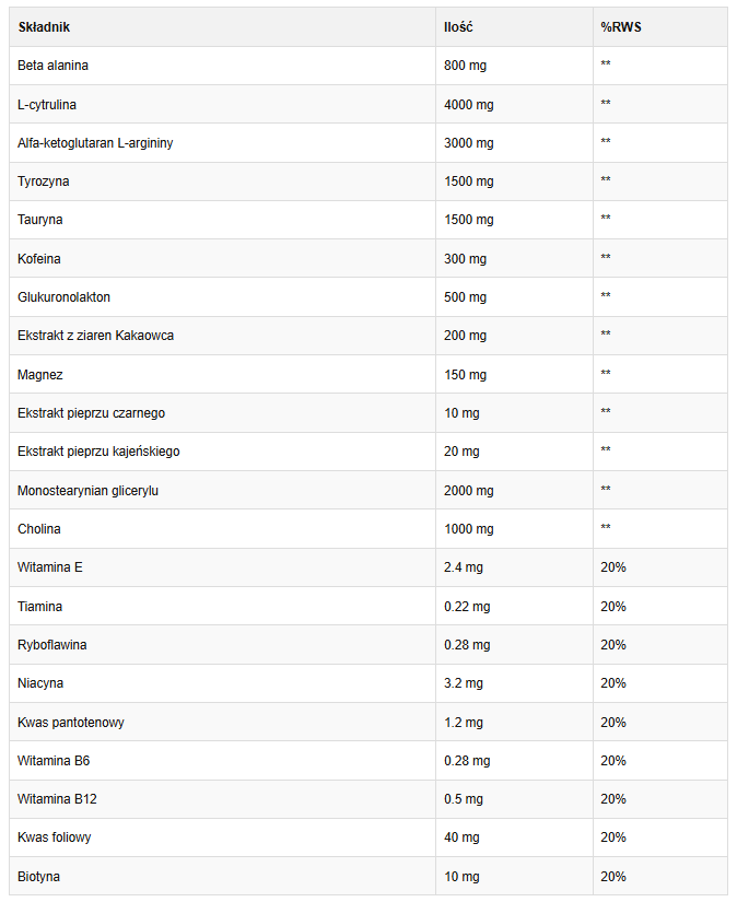 · მაქსიმალური სტიმულაცია: უზრუნველყოფს დამატებით ენერგიას და ძლიერ სტიმულაციას ვარჯიშის წინ.
