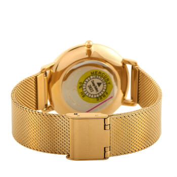 Gold-plated stainless steel case with a gold-plated stainless steel mesh bracelet. Fixed gold-plated bezel set with crystals. Gold dial with gold-tone hands and index hour markers. Dial Type: Analog. Quartz movement. Scratch resistant mineral crystal. Pull / push crown. Solid case back. Round case shape. Case size: 35 mm. Case thickness: 6.2 mm. Band width: 16 mm. Fold over slip through clasp. Water resistant at 30 meters / 100 feet. Functions: hour, minute. Major Series. Luxury watch style. Rebecca Minkoff Major Quartz Crystal Gold Dial Ladies Watch 2200392.