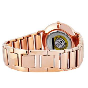 Rose gold-plated stainless steel case and bracelet. Fixed rose gold-plated bezel. Gray dial with rose gold-tone hands and index hour markers. Dial Type: Analog. Quartz movement. Scratch resistant mineral crystal. Pull / push crown. Solid case back. Round case shape. Case size: 35 mm. Case thickness: 6.2 mm. Band width: 16 mm. Jewelry clasp. Water resistant at 30 meters / 100 feet. Major Series. Casual watch style. Rebecca Minkoff Major Quartz Grey Dial Ladies Watch 2200260.